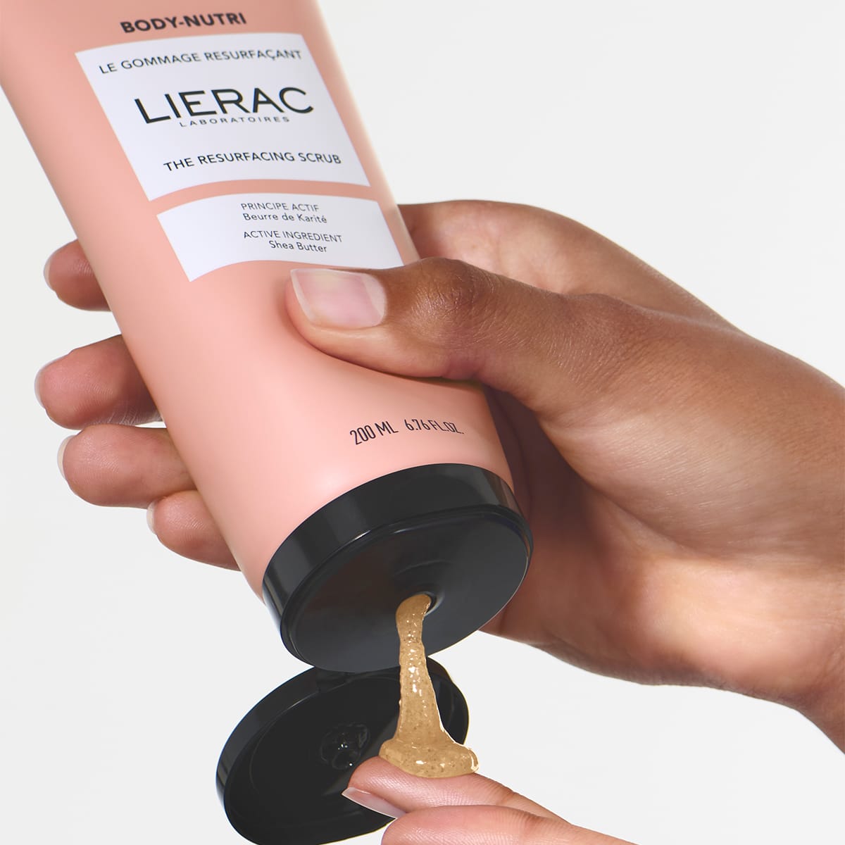 Es besteht zu 95 % aus natürlichen Inhaltsstoffen und duftet zart. Seine granitartige Textur kombiniert Mandelschalenpulver mit braunem Zucker und Sheabutter, um die Haut auf die Körperpflege vorzubereiten.